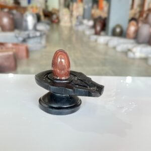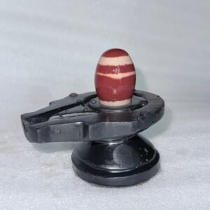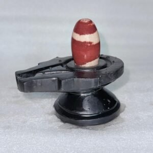 Divya Red Swirl Stone Shivling with Black Yoni Base