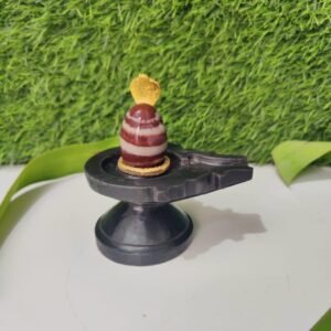 Mini Trishul-Topped Narmadeshwar Shivling with Black Yoni