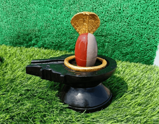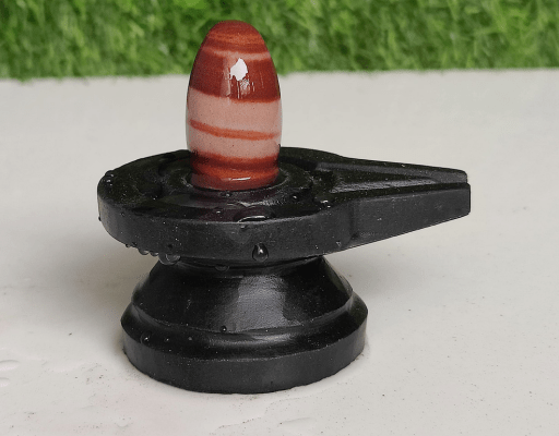 Divya Red Swirl Stone Shivling with Black Yoni Base
