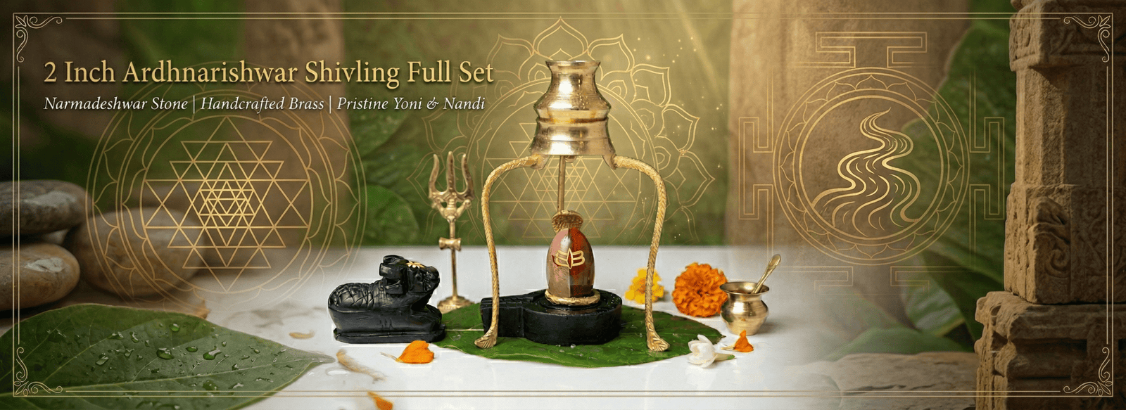 Ardhanarishwar Shivling Abhishek Set with Brass Jal Patra & Trishul
