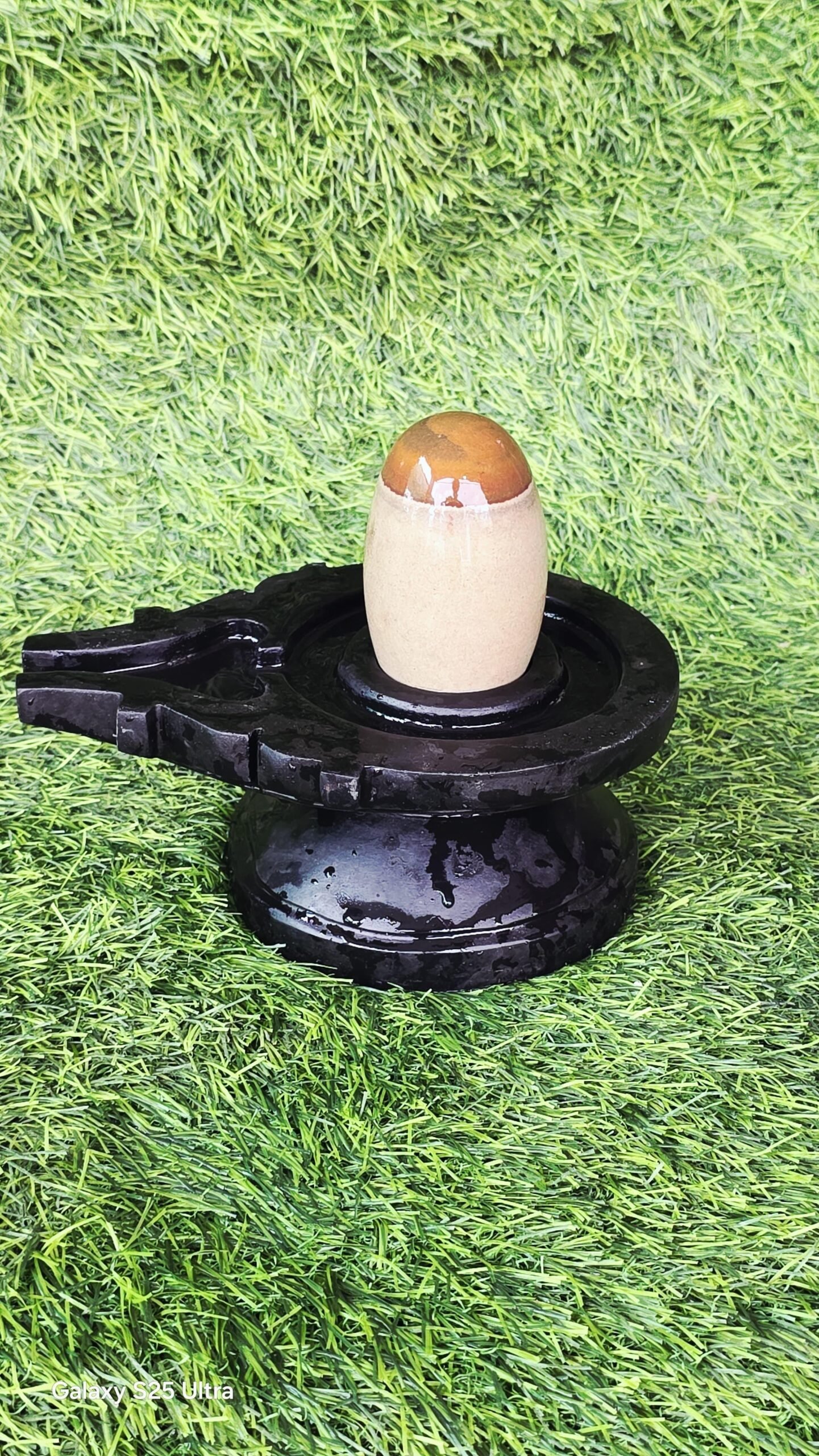 This sacred natural stone Shivling comes with a smooth yoni base, symbolizing divine energy and purity. Ideal for daily Shiva puja, meditation, and home mandir worship.