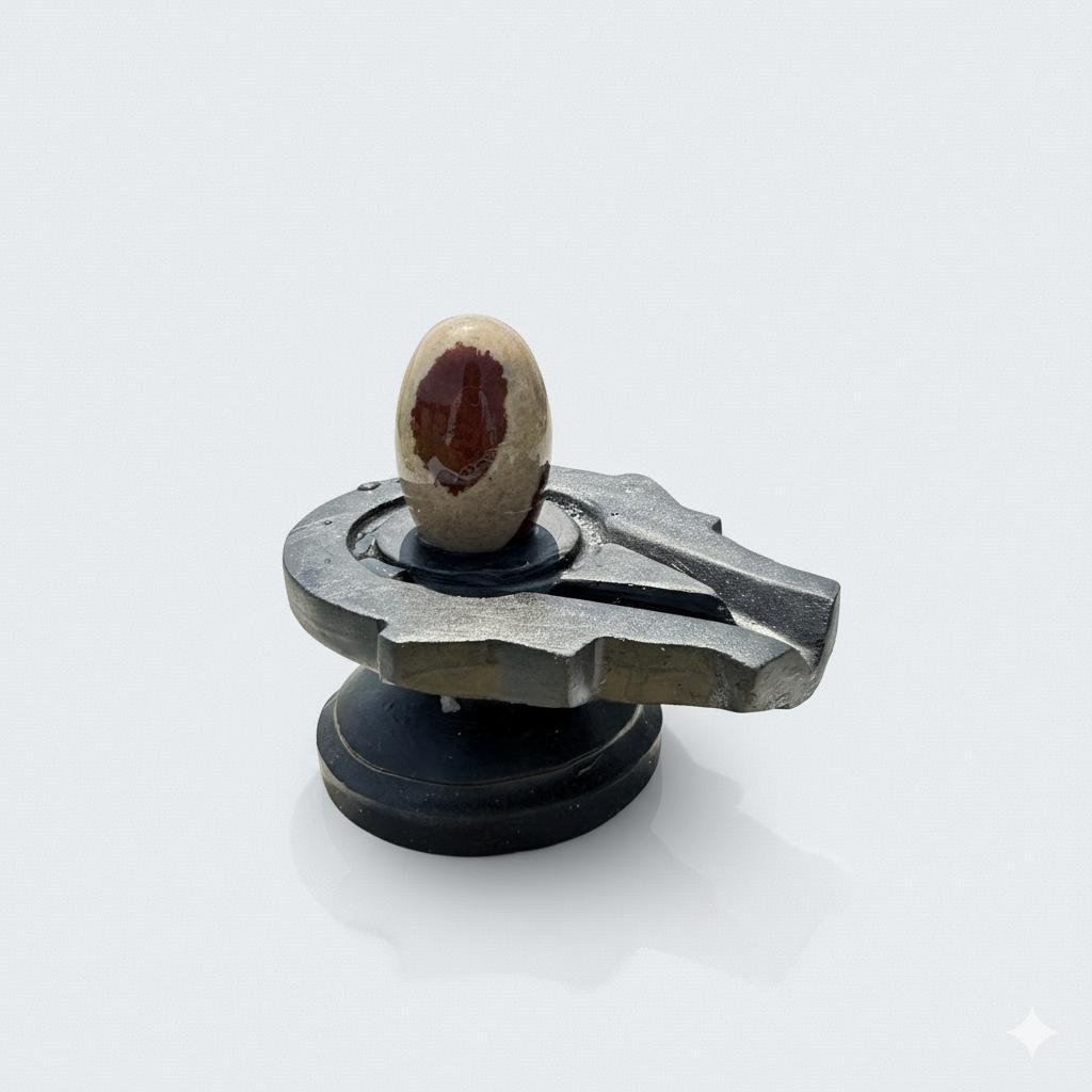 This divine natural stone Shivling is mounted on a strong metallic yoni base, symbolizing stability and sacred energy. Ideal for home mandir, daily Shiva puja, and spiritual worship.
